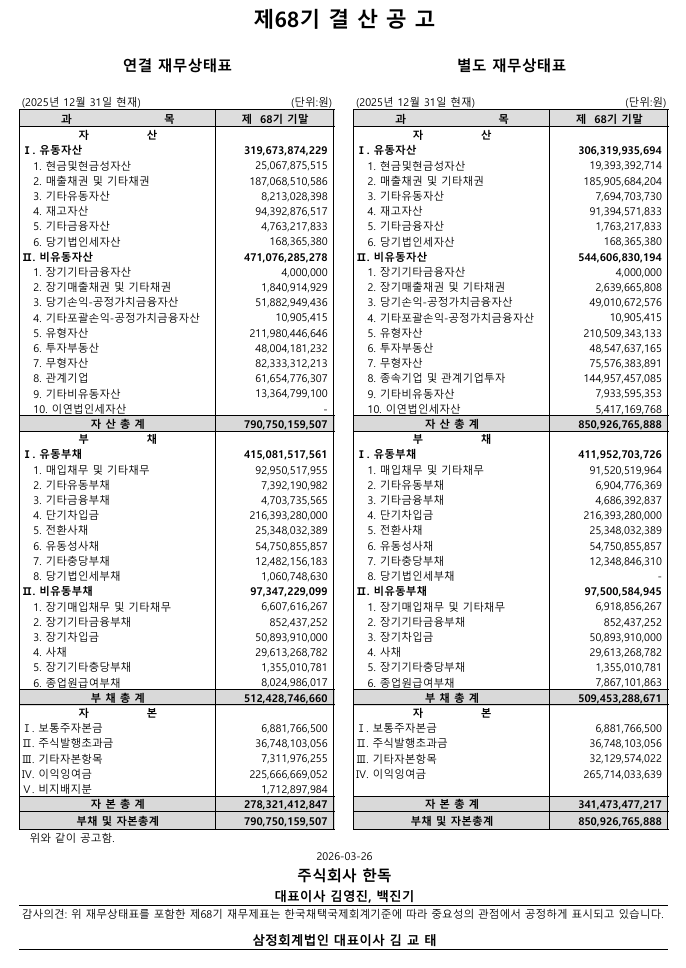 제68기 결산공고