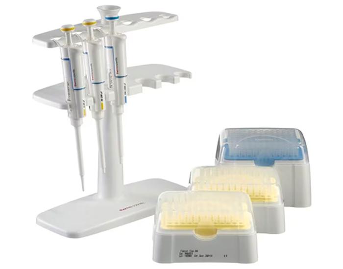 다양한 용량의 Finnpipette™ F1 피펫, 호환 Finntip, 피펫 스탠드가 한 세트로 구성되어있습니다.